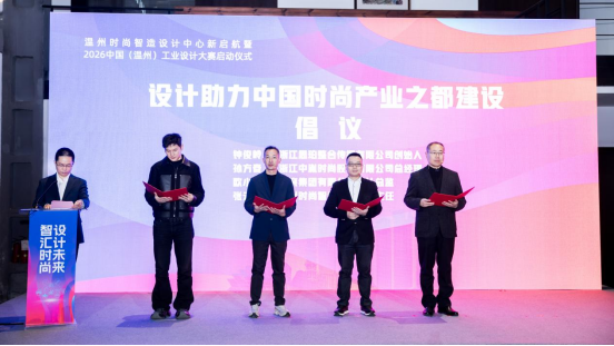 2026中国(温州)工业设计大赛作为温州工业设计领域的年度盛事在活动中正式发布。王振勇、张志东、陈胜军、余闯、市工业设计协会会长倪秀华等共同按下启动键,标志着温州时尚智造设计中心正式全新启航,并启动大赛。